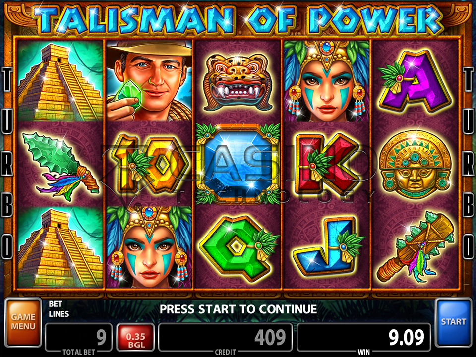 Talisman of Power takes you to the lifetime adventure in the Andes and occupies a gaming zone with 5 reels, 3 rows, and 9 fixed paylines. The game offers a standalone 1000-coin jackpot prize and goodies such as Wilds, Scatters, Free Spins and various Multipliers issued on special occasions. Themed icons, Mayan gods, and up to 20 extra spins sound tempting enough to persuade you to embark on a journey.